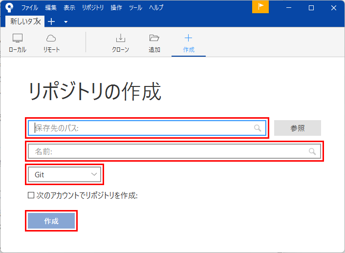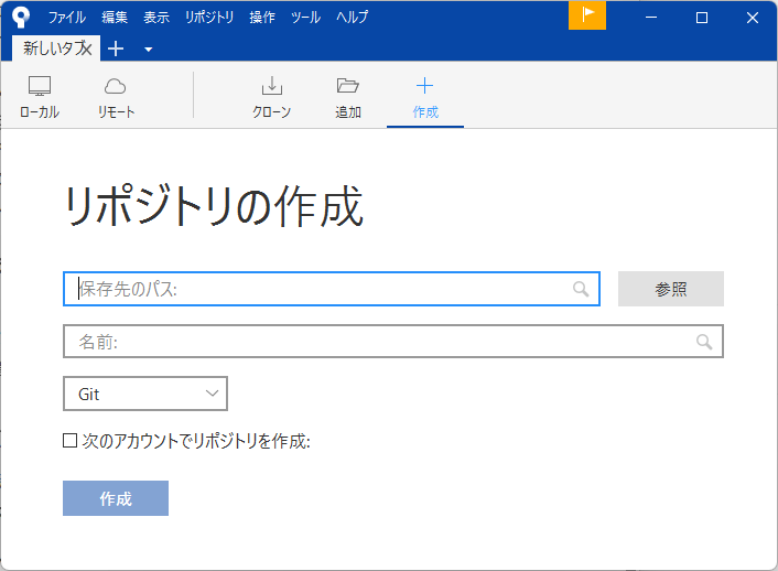 フォルダーを作成したら、新しいリポジトリを作っていきます