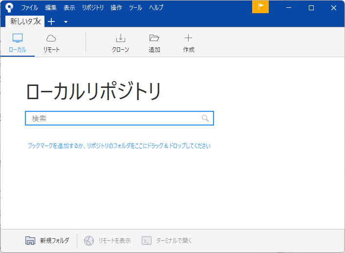 ソースツリーを起動すると、最初に出てくるのがローカルリポジトリと書かれてる画面が開きます。