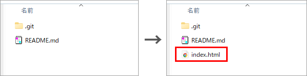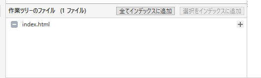 ファイルを削除すると、「-」のアイコンで「index.html」が表示される