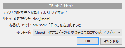 「Mixed(作業コピーの変更はそのままにするが、インデックスの状態をリセットする)」を選択してOKボタンを押します。