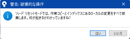 「Hard:全ての作業コピーを破棄する」を選択してOKボタンを押します。